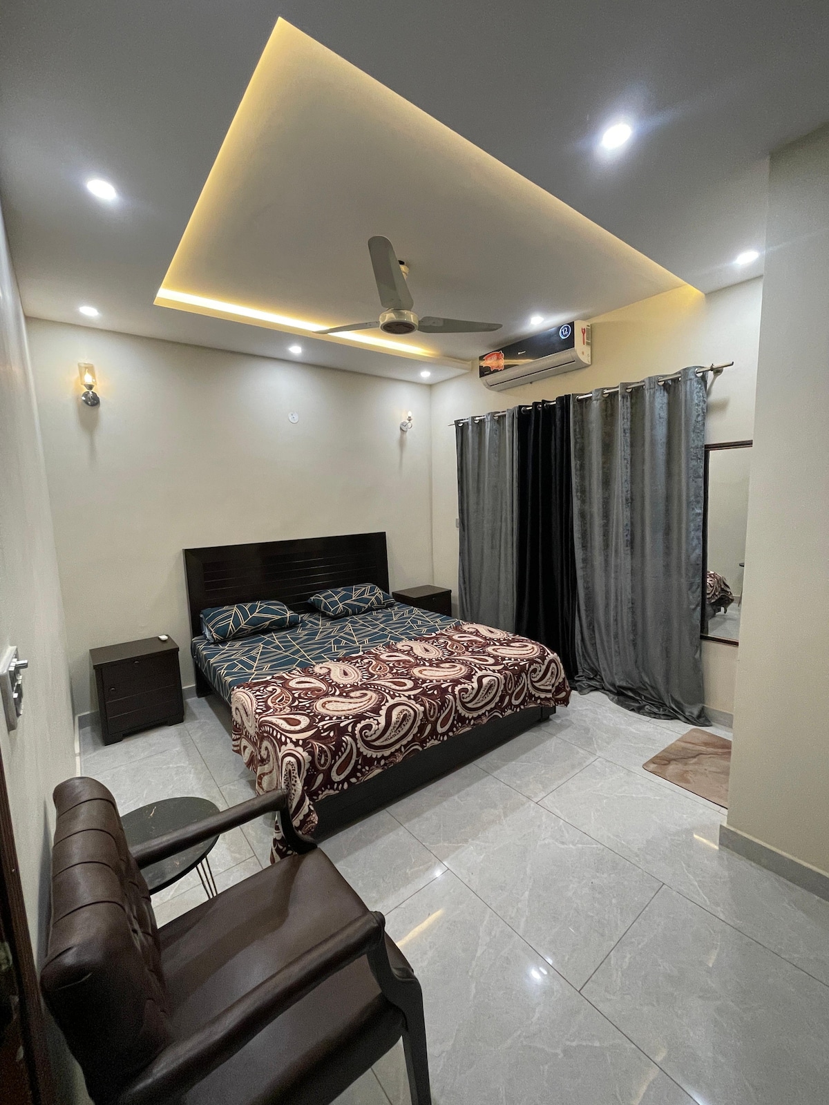 Luxury Studio fully furnished Apartment for couples, friends, solo females and families as well located at Gulberg Lahore Peaceful and private area where everything is in walking distance in the heart of Lahore Safe private & Secure Location - Self Check In with Pin Code - No need to meet anyone for keys - 24/7 Security - Modern Aesthetic design - King Sized Bed With Soft Spring Mattress - AC - Kitchen with Electric Stove - Free Secure Parking - Prime Location -Complimentary Snacks and Tea