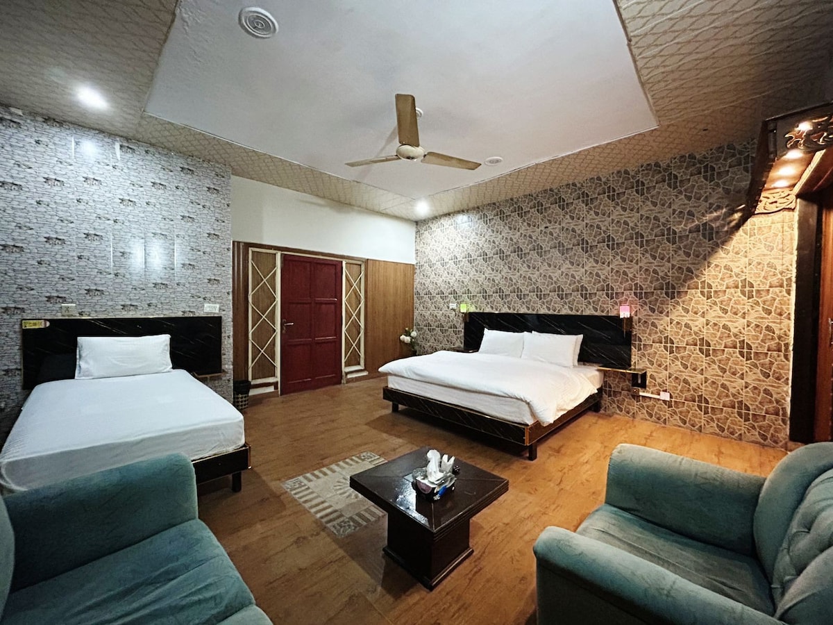 ID Card/Passport will be required after booking through airbnb and may be taken for security purposes through your stay. -Wi-Fi -A.C/Heating -Attached bathroom with hot water -Shared kitchen and lounge. -Full king-sized bed, mini-fridge, and cupboards. -Smart TV. Mattresses are charged separately for 500pkr each (3 mattresses are free) No Smoking in listing premises Only married couples allowed due to pakistani local laws(documentation required) visitors allowed with permission only