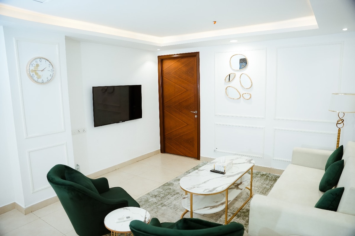Our 1 BHK Orbit Penthouse in DHA Phase 5 is where urban chic meets celestial cool. Think: a glowing moon wall for those late-night selfies and a bold dollar-stacked art piece that screams "main character energy" Wake up to park views from your private balcony swing, binge your faves on the 50" 4K Smart TV, or cook up something aesthetic in the fully loaded designer kitchen. The interiors? Abstract, stylish, and made for the feed. Plus, you're right next to Lahore's hottest dining spots.