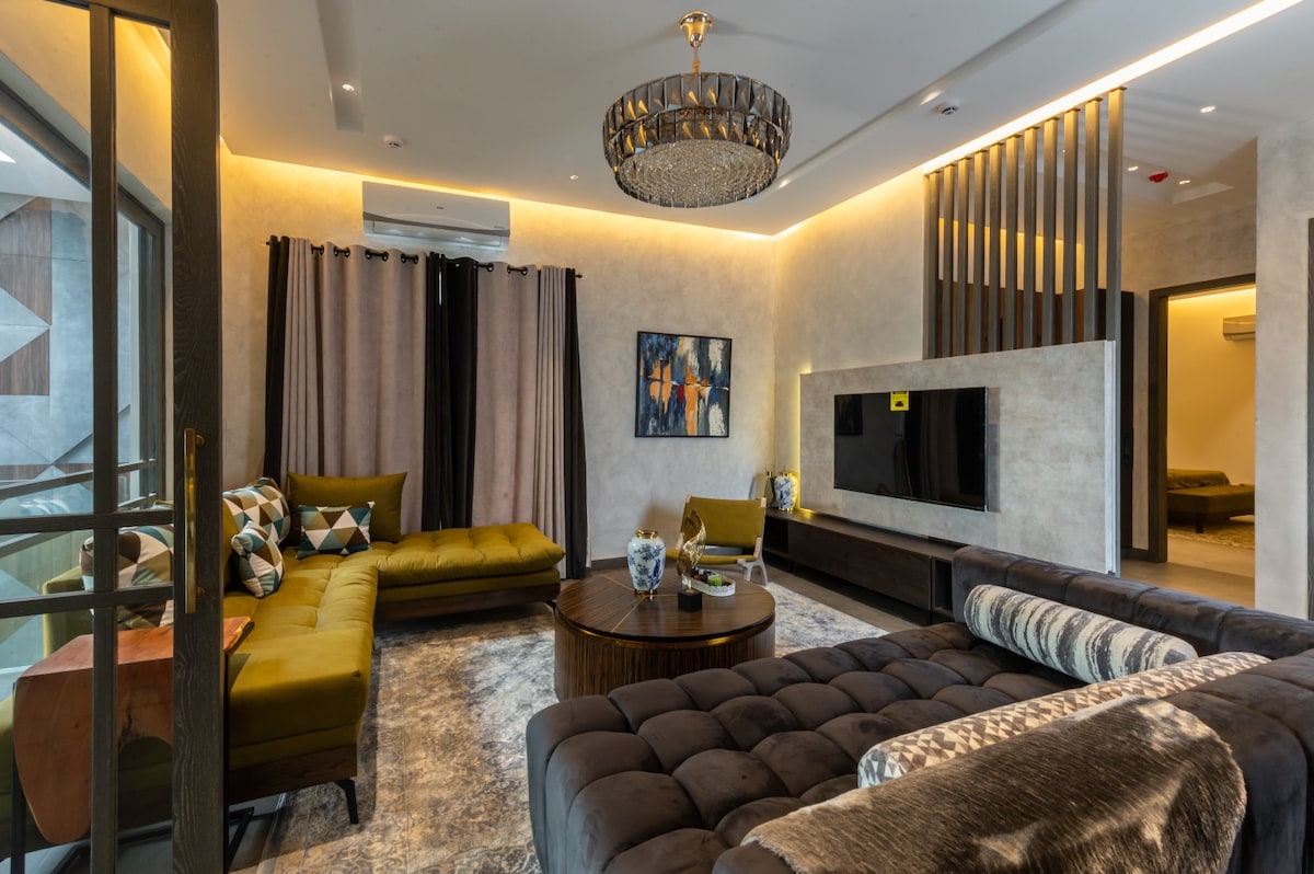 Welcome to our sleek, modern 3-bedroom penthouse, ideally located in the heart of the city. Perfect for friends and family, this stylish and spacious retreat offers comfort and convenience. Enjoy cozy lounge, a fully equipped kitchen, two balconies, and easy access to top attractions, shopping malls, the airport, Polo Ground, and Neon square with 30+ food outlets, rides and events. With 2 bedrooms on the upper floor and 1 bedroom on the ground floor, our home is the perfect base for your stay!
