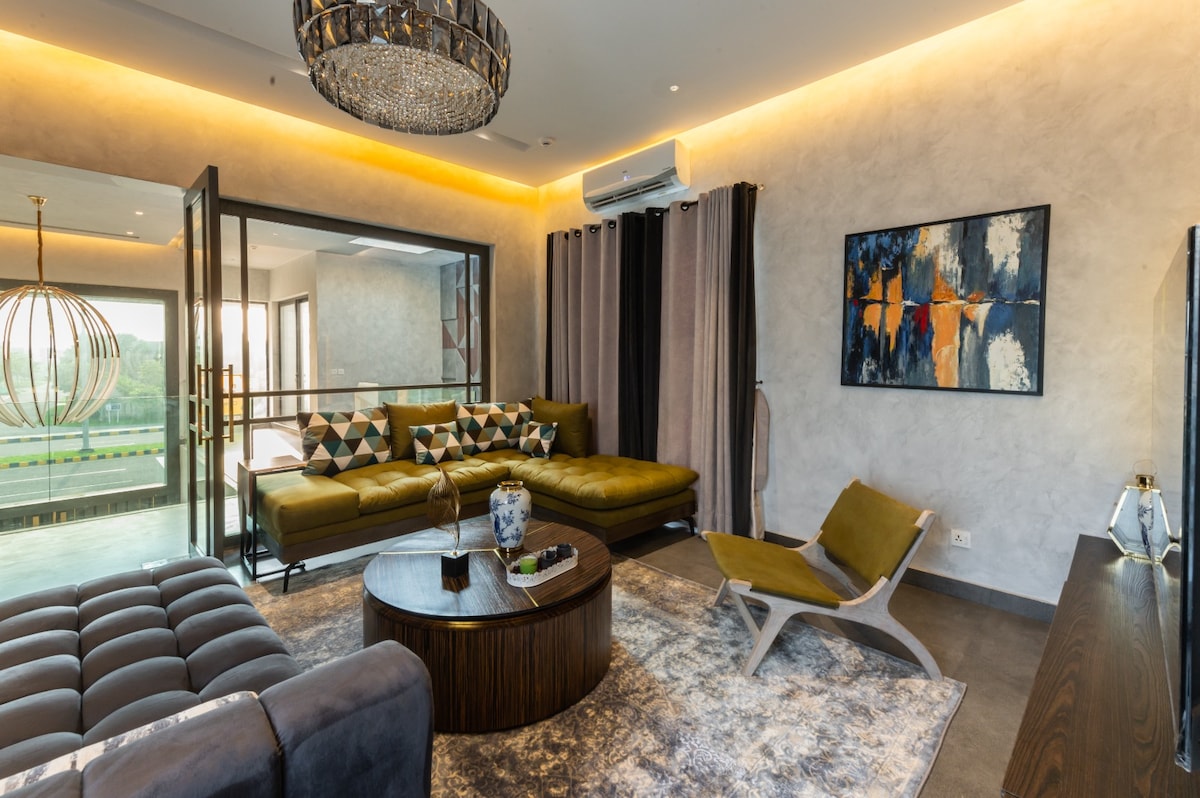 Welcome to our sleek, modern 3-bedroom penthouse, ideally located in the heart of the city. Perfect for friends and family, this stylish and spacious retreat offers comfort and convenience. Enjoy cozy lounge, a fully equipped kitchen, two balconies, and easy access to top attractions, shopping malls, the airport, Polo Ground, and Neon square with 30+ food outlets, rides and events. With 2 bedrooms on the upper floor and 1 bedroom on the ground floor, our home is the perfect base for your stay!