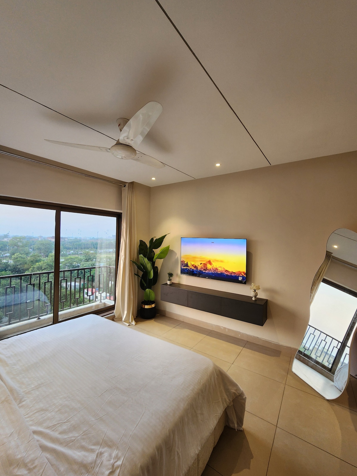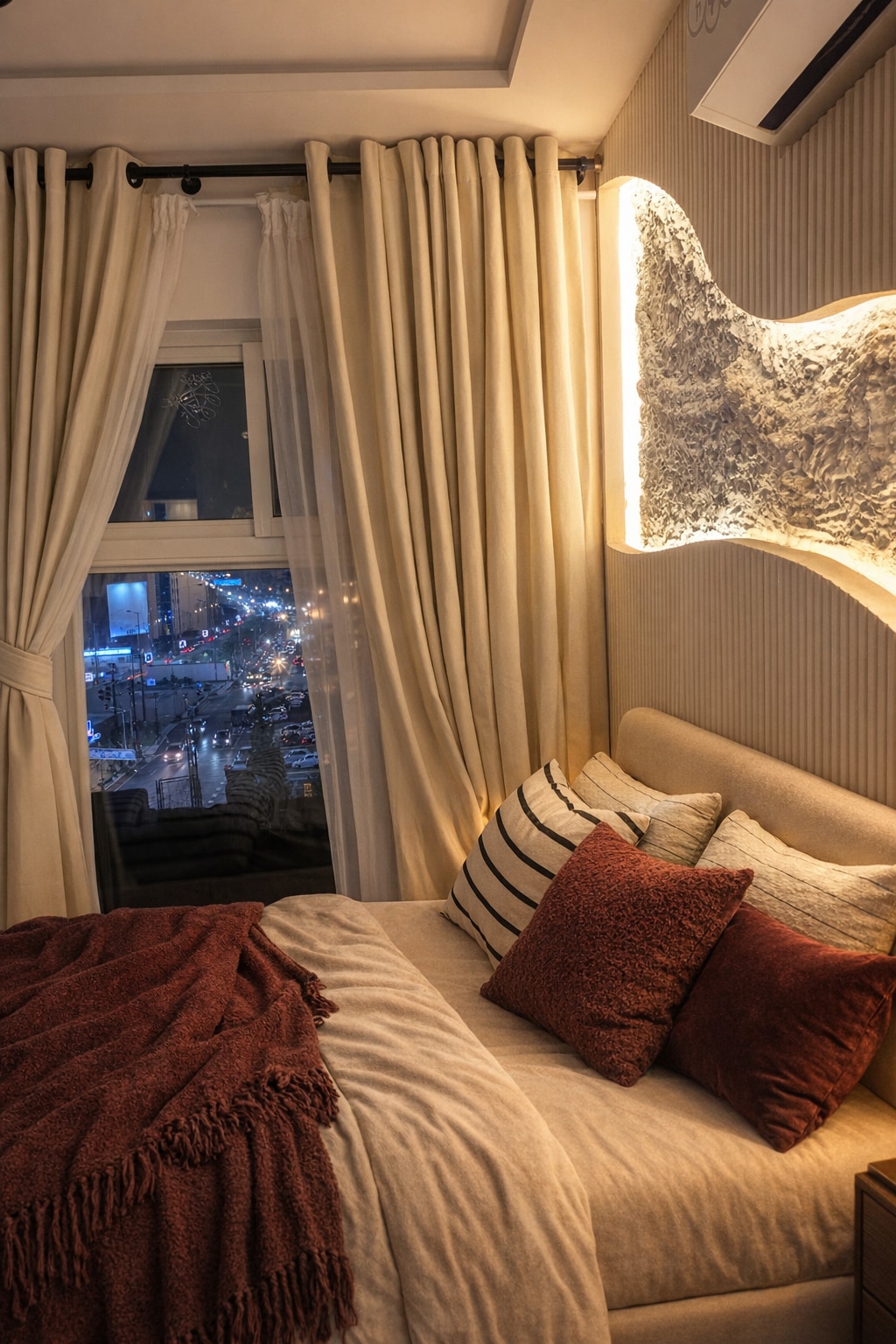 Experience designer living at Luniq, just steps from MM Alam Road the heart of Lahore’s cafes, boutiques, and nightlife. • 🛋️ Aesthetic lounge with cozy rugs, hanging lamp & full-length curtains • 🛏️ Plush king-size bed with premium bedding & city views • 55” Android Smart TV with Netflix & YouTube Premium • 🍳 Fully equipped modern kitchen with essentials • ⚡ Fast Wi-Fi for work or streaming • 🔑 Seamless self check-in for complete privacy • 🌆 Prime Gulberg location