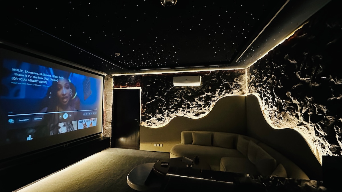 Luxury 1 BHK Ultra Premium Stary Lights Themed Apartment with 200 inch Projector screen for couples, friends, solo females and families as well located at Gulberg Lahore Peaceful and private area in the heart of Lahore Safe private & Secure Location - Self Check In with Pin Code - No need to meet anyone for keys - 24/7 Security - King Sized Bed With Soft Spring Mattress - 2 Ac - Kitchen with Electric Stove - Prime Location -Pool, Cinema, Gym -Basement Parking -Complimentary Snacks and Tea