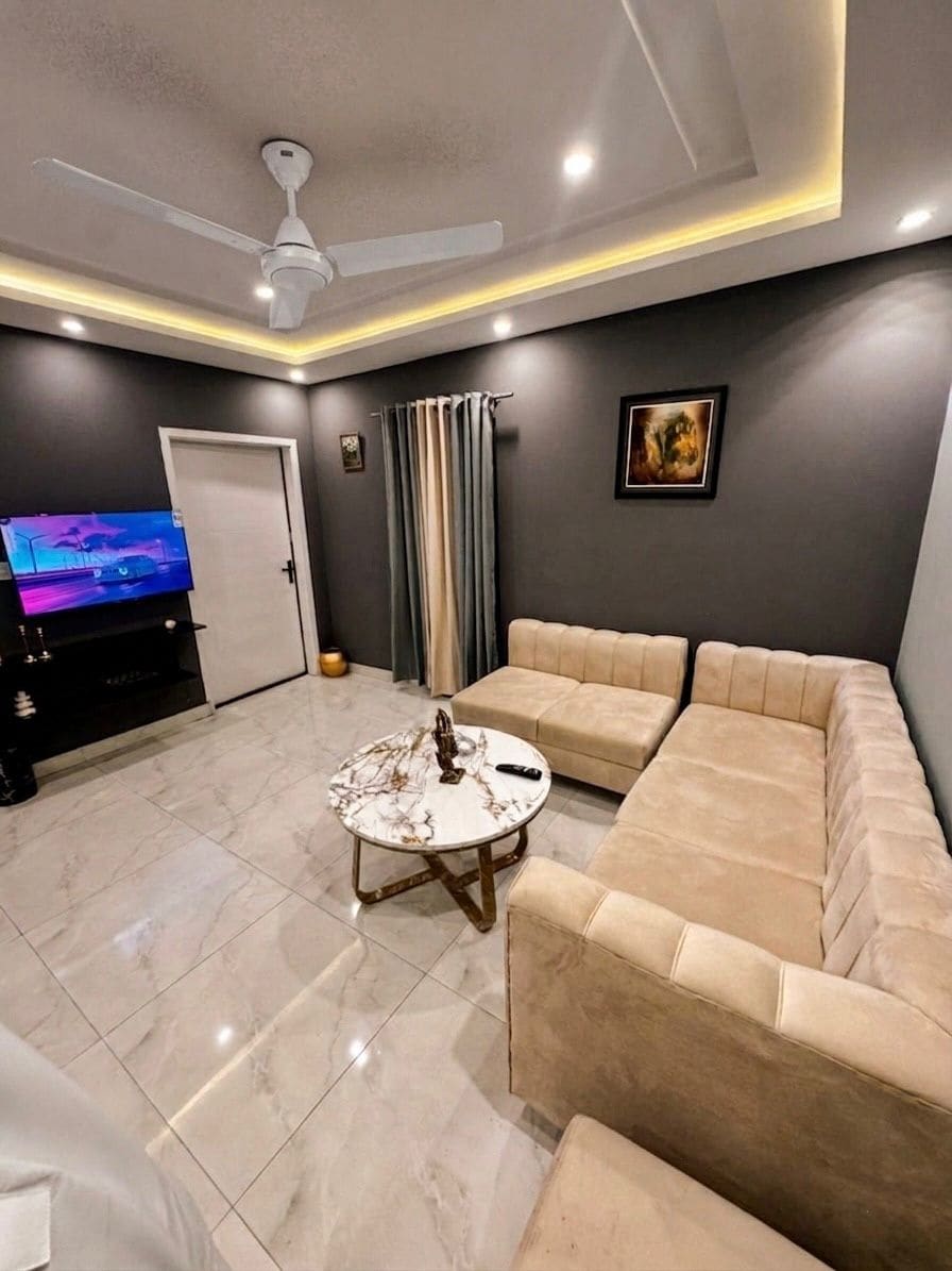 Located in the heart of Lahore, this stunning 9th-floor apartment offers a breathtaking panoramic view of the city skyline, the perfect blend of urban charm and peaceful living. Step inside and experience a cozy, calm, and inviting environment designed for ultimate comfort. The apartment features a spacious layout with soft lighting and a relaxing ambiance that instantly makes you feel at home.