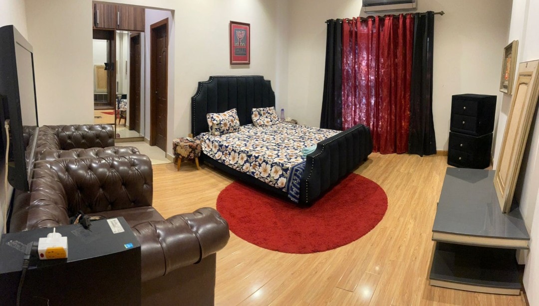 Relax in style at this peaceful 1 Kanal lower portion in Paragon Lahore, just minutes from the airport and market. Enjoy a private entrance, a garden view, and all modern comforts — from a fully equipped kitchen to smart LED TVs and air-conditioned rooms. Whether you book the entire portion or just one bedroom, you’ll feel right at home in this calm and secure neighborhood. Perfect for families, couples, and business travelers.. Ample Parking Space Perfect for families and travelers comfort
