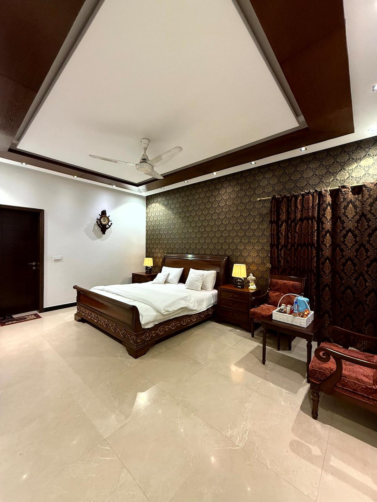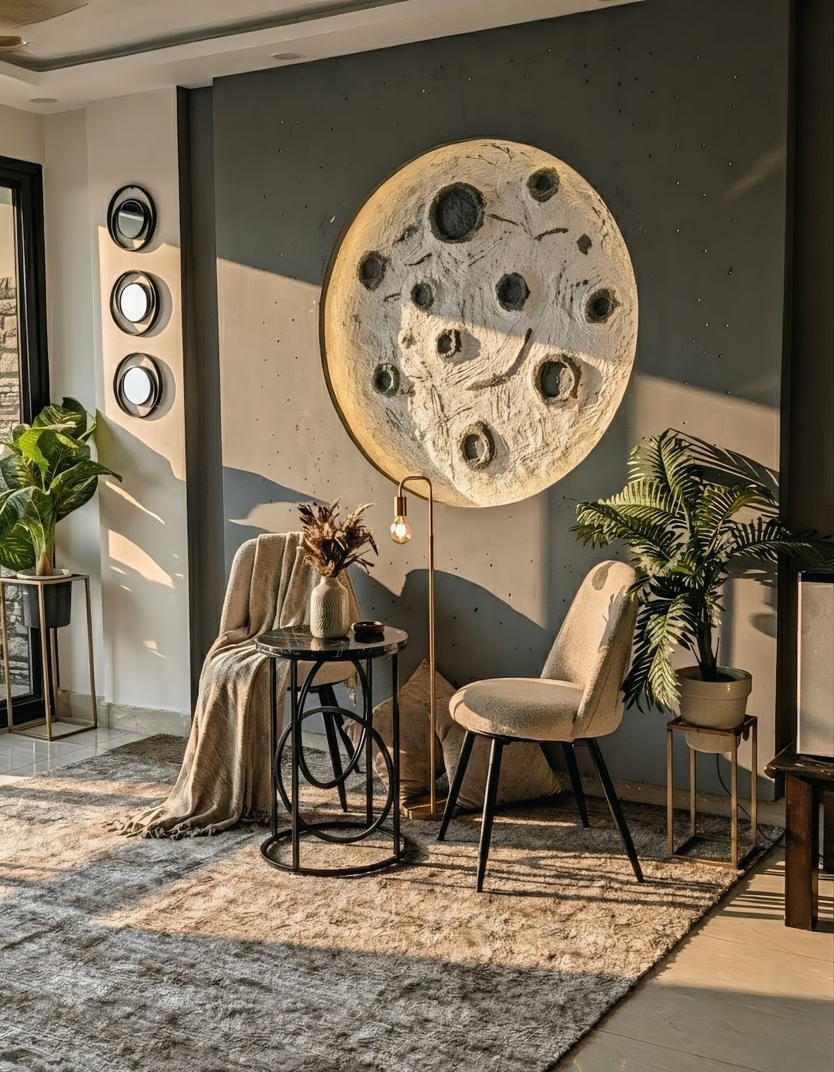 Our 1 BR condo in DHA Phase 5 is where urban chic meets celestial cool. Think: a glowing moon wall for those late-night selfies and a bold dollar-stacked art piece that screams "main character energy" Wake up to park views from your private balcony swing, binge your faves on the 50" 4K Smart TV, or cook up something aesthetic in the fully loaded designer kitchen. The interiors? Abstract, stylish, and made for the feed. Plus, you're right next to Lahore's hottest dining spots.