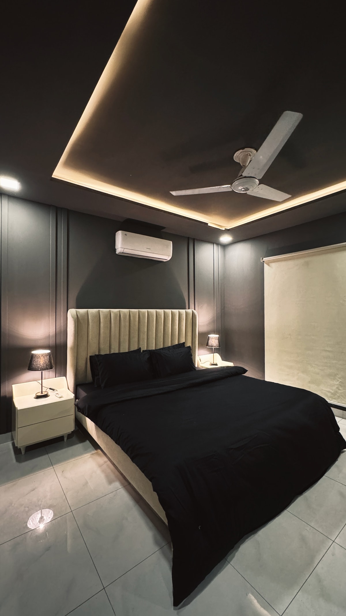 Our 1 BR condo in DHA Phase 5 is where urban chic meets celestial cool. Think: a glowing moon wall for those late-night selfies and a bold dollar-stacked art piece that screams "main character energy" Wake up to park views from your private balcony swing, binge your faves on the 50" 4K Smart TV, or cook up something aesthetic in the fully loaded designer kitchen. The interiors? Abstract, stylish, and made for the feed. Plus, you're right next to Lahore's hottest dining spots.