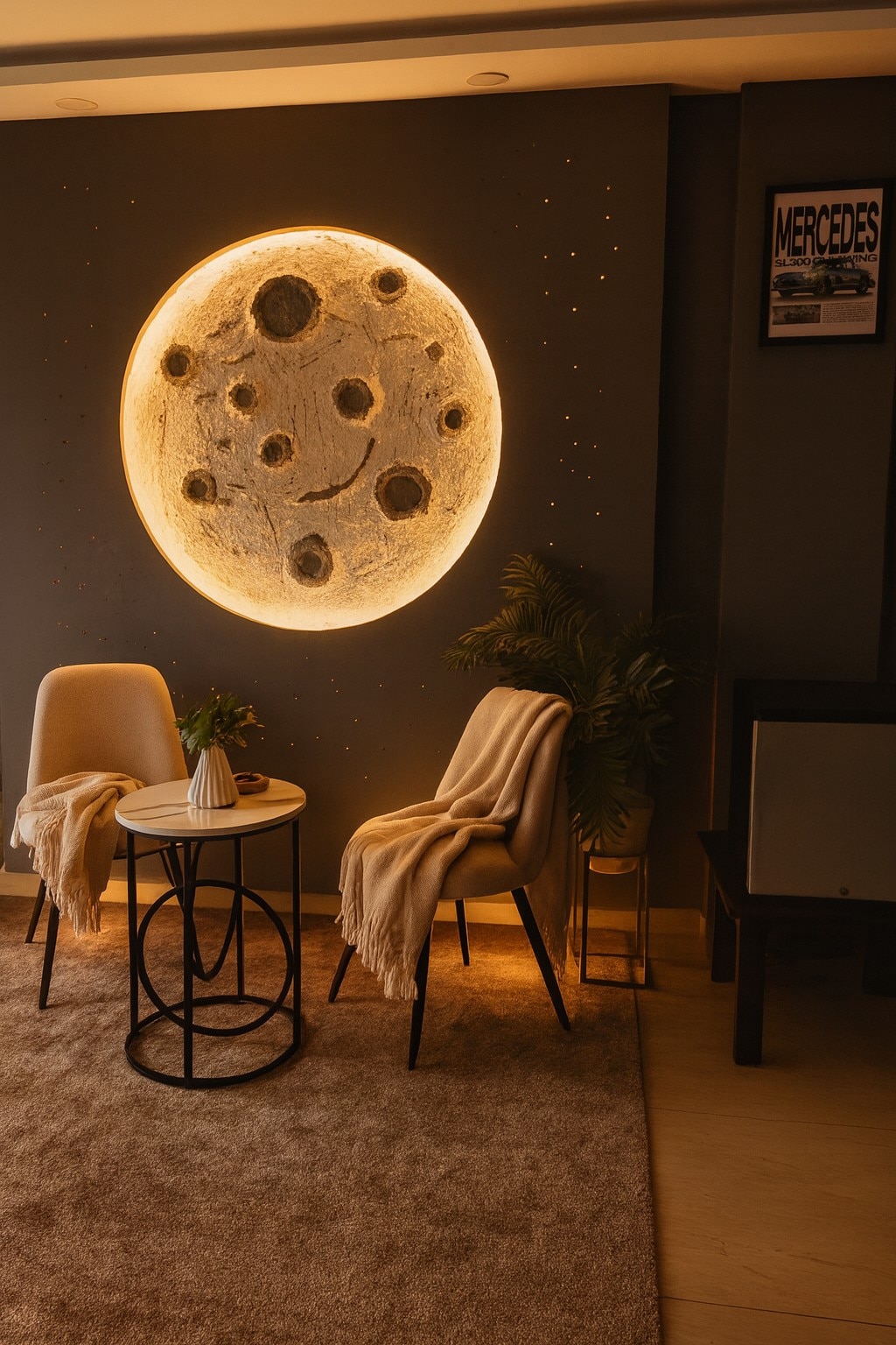Welcome to Twilight – a one-of-a-kind moon-themed apartment in DHA Phase 6 🌙 • 1-bedroom with cozy lighting & modern design • Stylish lounge with artful décor & 50” Smart LED •Fully equipped kitchen with stove, microwave & kettle • High-speed WiFi & seamless self check-in 📍 Prime location near Raya Commercial, Dolmen Mall, Ring Road and many cafes Your perfect blend of comfort & style. It’s the best option either you are travelling for business or for leisure.