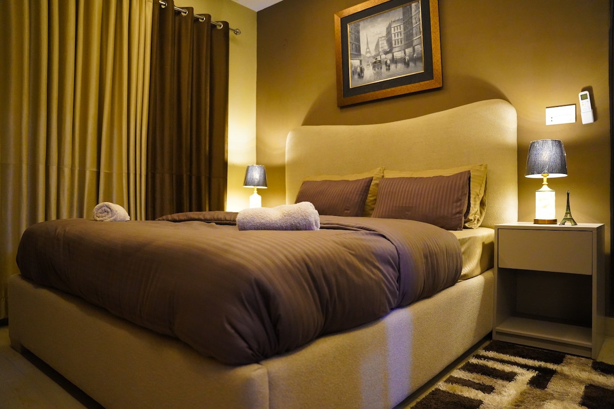 Welcome to Velvet Haven – a cozy, elegant 1BHK retreat in the heart of Bahria Town. Designed with a rich brown-themed interior, this spacious apartment offers ultimate comfort with a king-size bed, ambient lighting, and a stylish lounge with a smart TV. Enjoy high-speed WiFi, Netflix, a fully equipped kitchen, and all essential toiletries. With marts, restaurants, and Eiffel Tower Park just steps away, Velvet Haven is perfect for a relaxing stay, whether for leisure or a short getaway.