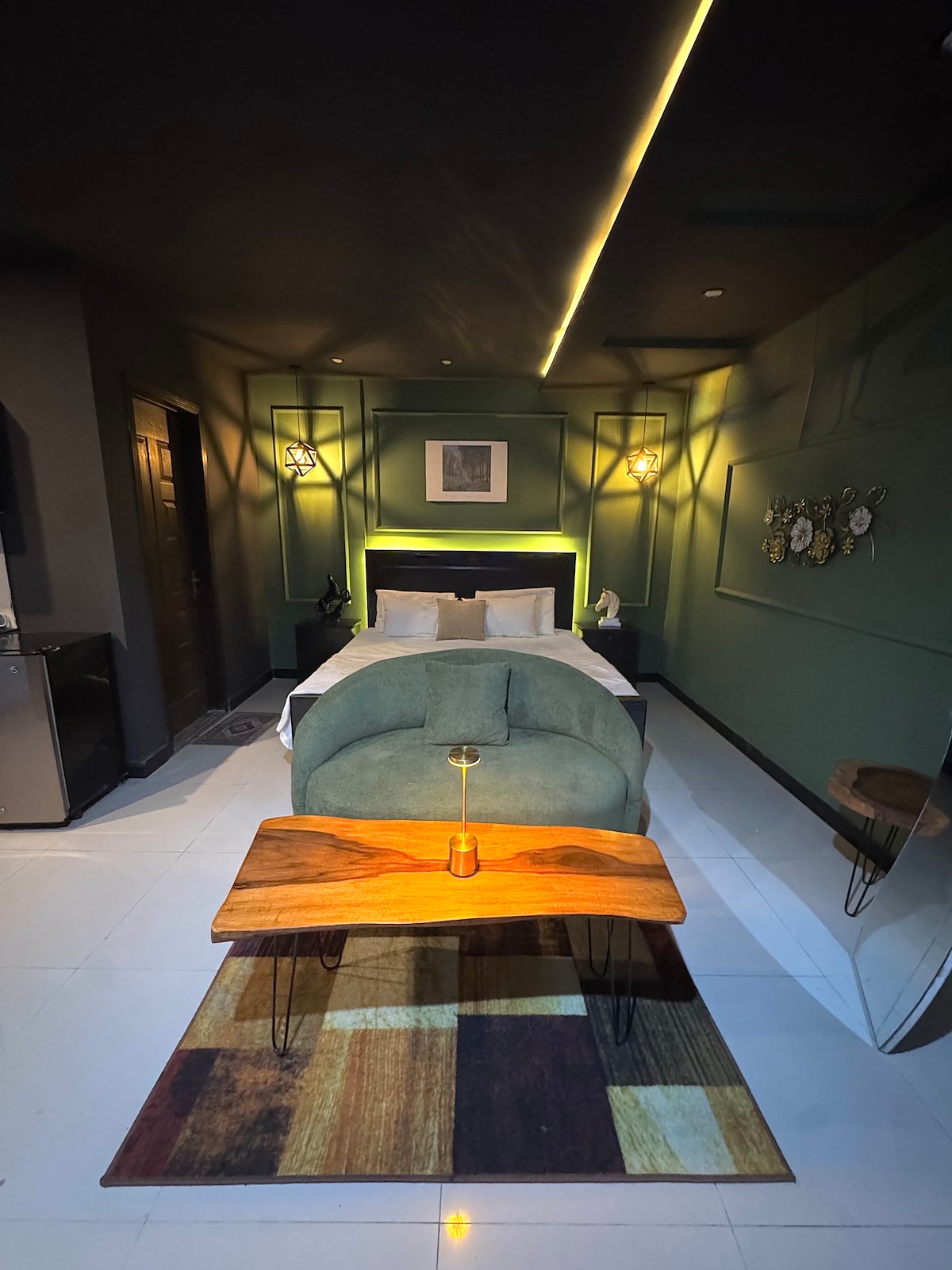 👑 Welcome to Gold Crib Apartments & Residence Introducing GoldCrib Midnight Studio. A modern studio apartment located in the heart of Bahria Town, designed with a sleek olive and black theme. Key Features: ✅ Olive & Black Modern Interior ✅ Wi-Fi & Smart TV ✅ Studio Layout with Attached Bathroom ✅ Equipped Kitchenette ✅ Self Check-in ✅ Free Parking & Elevator Access ✅ Air Conditioning ✅ 24/7 Support ✅Gym in Building 📍 Close to food outlets, banks, and major attractions within Bahria Town.