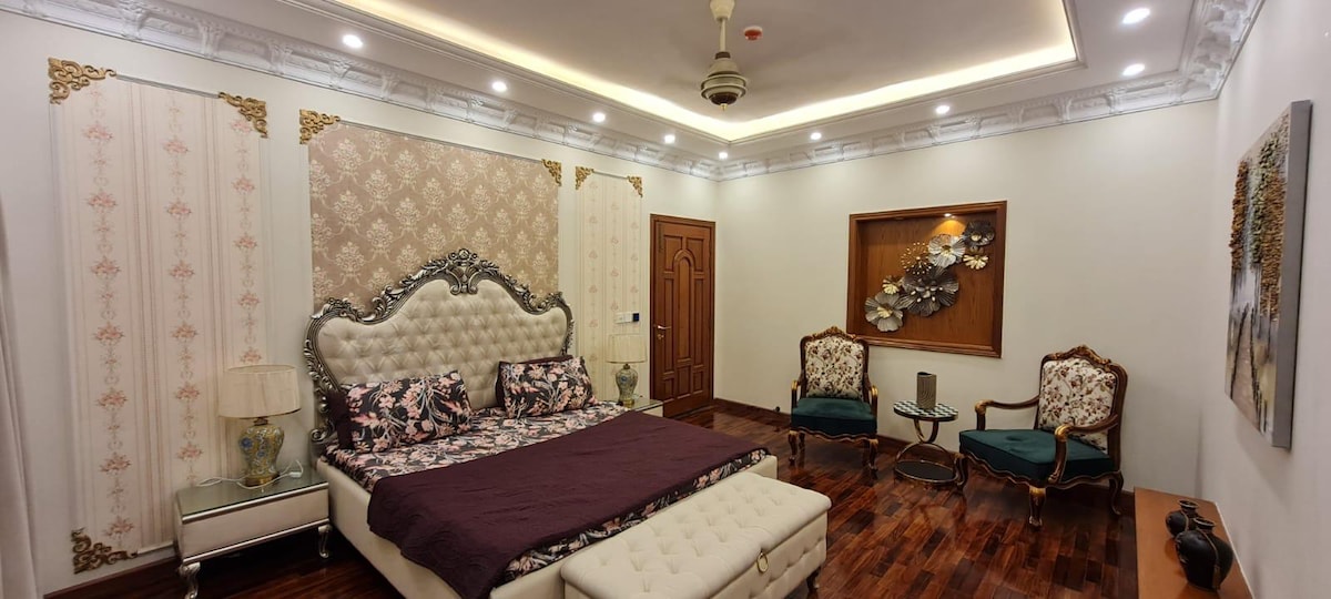 Cozy designer studio with warm lighting, Netflix, and luxe vibes. Enjoy a comfy queen bed, aesthetic decor, backlit mirror, snack basket, and a sleek kitchenette. Perfect for business trips or solo travelers. Located close to top cafes and shops. Ideal for unwinding or content creation. Where you’re located: 1. 5 mins from Motorway 🛣️ 2. 10 mins from Ring Road 🚦 3. 15 mins from Emporium Mall 🏬 4. 15 mins from Restaurants 🍲 5. 20 mins from DHA. 🏘️ 6. 25 mins from Gulberg. 🏪