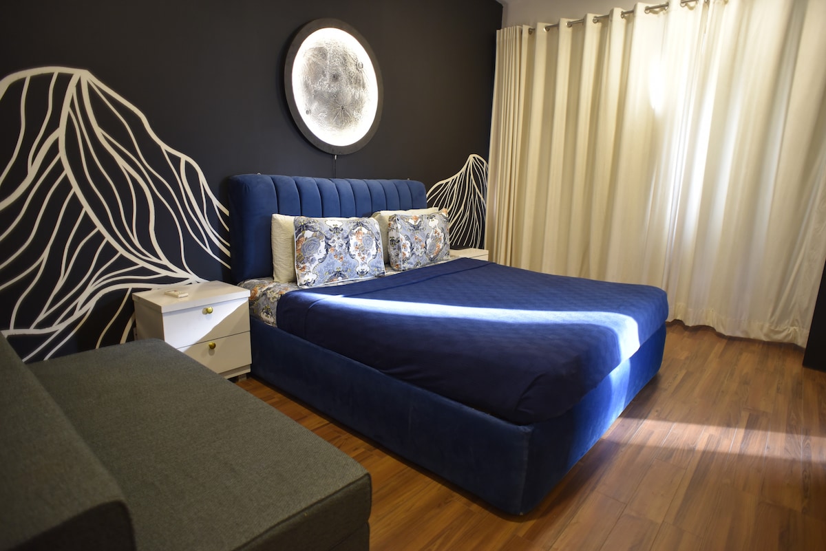 Welcome to Twilight – a one-of-a-kind moon-themed apartment in DHA Phase 6 🌙 • 1-bedroom with cozy lighting & modern design • Stylish lounge with artful décor & 50” Smart LED •Fully equipped kitchen with stove, microwave & kettle • High-speed WiFi & seamless self check-in 📍 Prime location near Raya Commercial, Dolmen Mall, Ring Road and many cafes Your perfect blend of comfort & style. It’s the best option either you are travelling for business or for leisure.