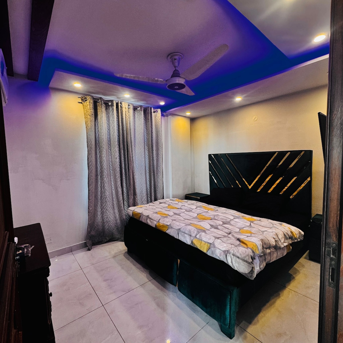 Luxury 1 BHK Ultra Premium Stary Lights Themed Apartment with 200 inch Projector screen for couples, friends, solo females and families as well located at Gulberg Lahore Peaceful and private area in the heart of Lahore Safe private & Secure Location - Self Check In with Pin Code - No need to meet anyone for keys - 24/7 Security - King Sized Bed With Soft Spring Mattress - 2 Ac - Kitchen with Electric Stove - Prime Location -Pool, Cinema, Gym -Basement Parking -Complimentary Snacks and Tea