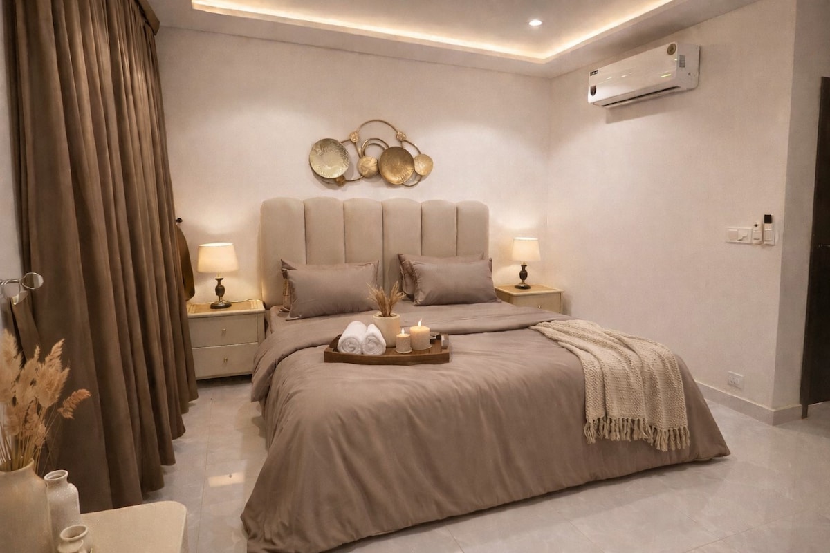 Why choose between convenience, safety, and quality when you can have it all? Welcome to my stylish 2-bedroom retreat a space designed for comfort, ease, and peace of mind. ✔ Prime Location – Steps away from Restaurant, Medical store, Parks, Marts, salons, Bundu Khan bakery, shopping Mall. ✔ Safe & Secure – A well-lit, modern building in a friendly neighborhood. ✔ Thoughtful Comfort– High-end furnishings, premium linens, and everything you need for a seamless stay. PER AC 2K EXTRA
