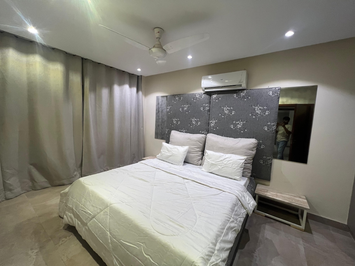 “Welcome to Oyster Courtyard, Gulberg – a luxurious designer one-bedroom apartment in the heart of Lahore! Perfect for travelers, couples, or solo explorers, this modern space offers comfort and style with premium furnishings and a cozy ambiance. Enjoy top-tier building amenities, including gym🏋️, swimming pool 🏊 , hot tub, and an on site bakery coffee ☕️shop. Located in the Gulberg, you’re just minutes walk away from the city’s best restaurants, shopping malls, and nightlife. Max guest :-3