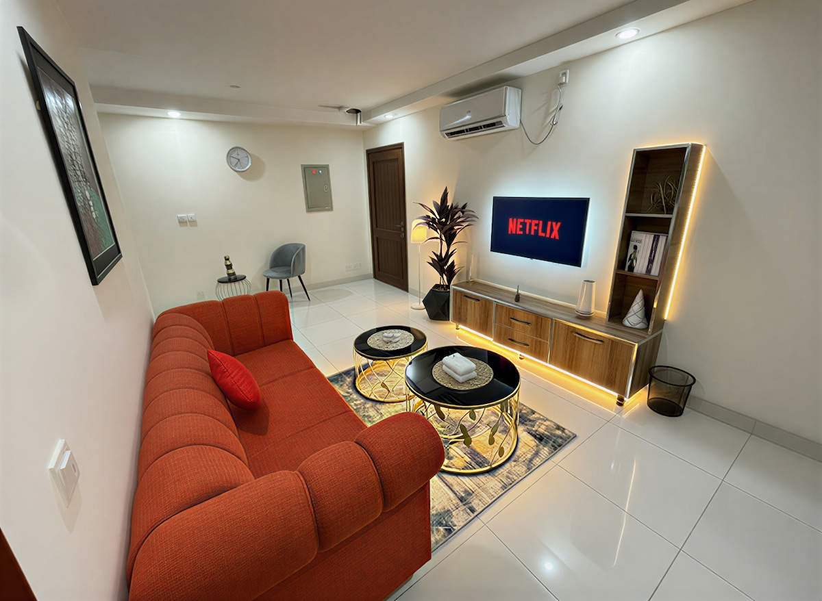 Why choose between convenience, safety, and quality when you can have it all? Welcome to my stylish 2-bedroom retreat a space designed for comfort, ease, and peace of mind. ✔ Prime Location – Steps away from Restaurant, Medical store, Parks, Marts, salons, Bundu Khan bakery, shopping Mall. ✔ Safe & Secure – A well-lit, modern building in a friendly neighborhood. ✔ Thoughtful Comfort– High-end furnishings, premium linens, and everything you need for a seamless stay. PER AC 2K EXTRA