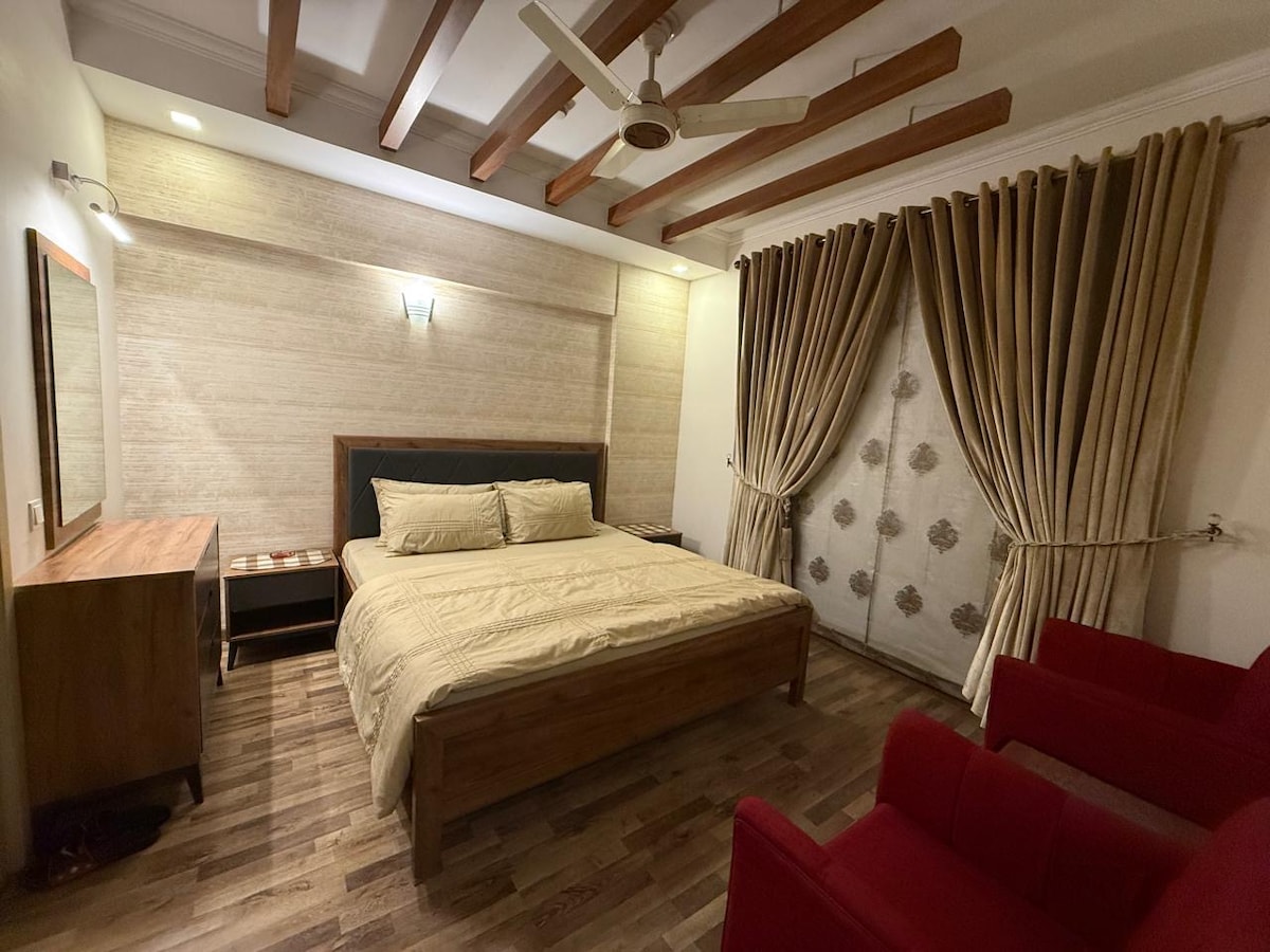 Stay in the vibrant heart of Lahore in this stylish studio on the 4th floor of Indigo Boutique Apartments. Perfect for travelers , couples, family it features: Cozy lounge to relax or catch up on work Smart TV with entertainment box for YouTube or streaming Compact equipped kitchen for light cooking Clean, comfortable bathroom with fresh towels Walk to restaurant, cafe, and shops in Gulberg , with easy access to Lahore. Modern, convenient, centrally located—your perfect home away from home