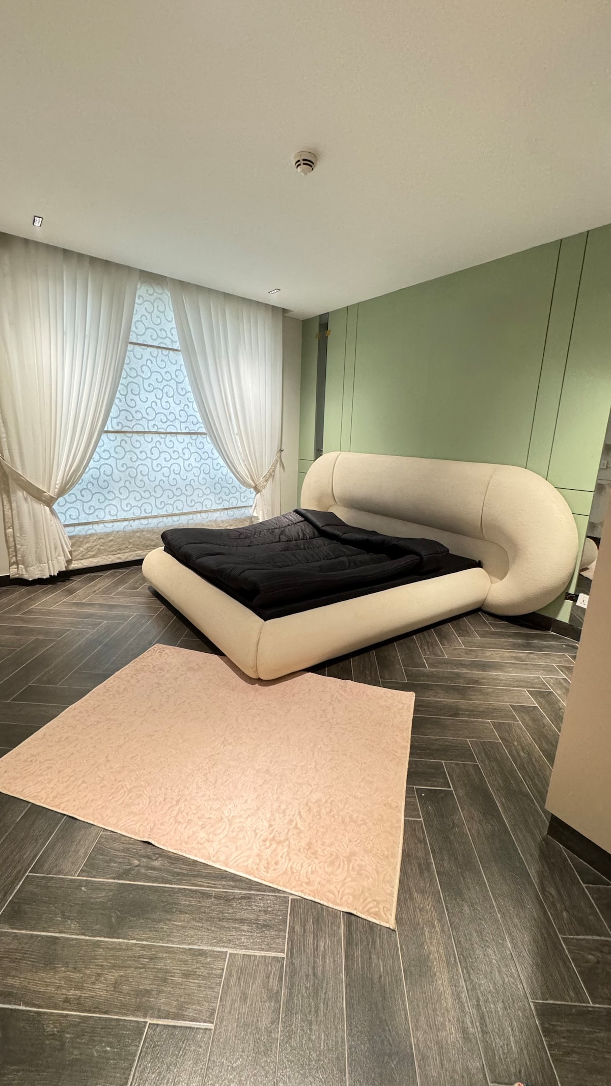 Our 1 BHK Orbit Penthouse in DHA Phase 5 is where urban chic meets celestial cool. Think: a glowing moon wall for those late-night selfies and a bold dollar-stacked art piece that screams "main character energy" Wake up to park views from your private balcony swing, binge your faves on the 50" 4K Smart TV, or cook up something aesthetic in the fully loaded designer kitchen. The interiors? Abstract, stylish, and made for the feed. Plus, you're right next to Lahore's hottest dining spots.