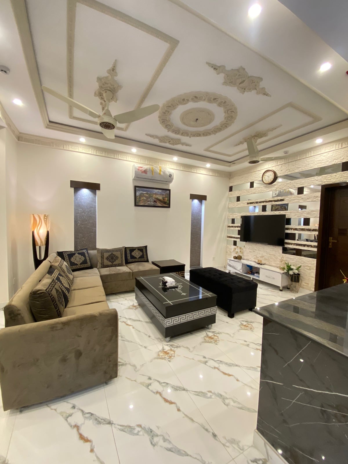 Only families and group of females or group of males can get intouch.we don’t accomodate unmarried couples. 2 minute drive to emporium mall,cinemas and many restaurants. Easily accessible from ring road and nearest to motorway from other cities. Extra facilities: dinning table,extra mattress, kitchen utensils,kettle,iron,stove,2 air conditioner, extra bathroom, parking garage etc