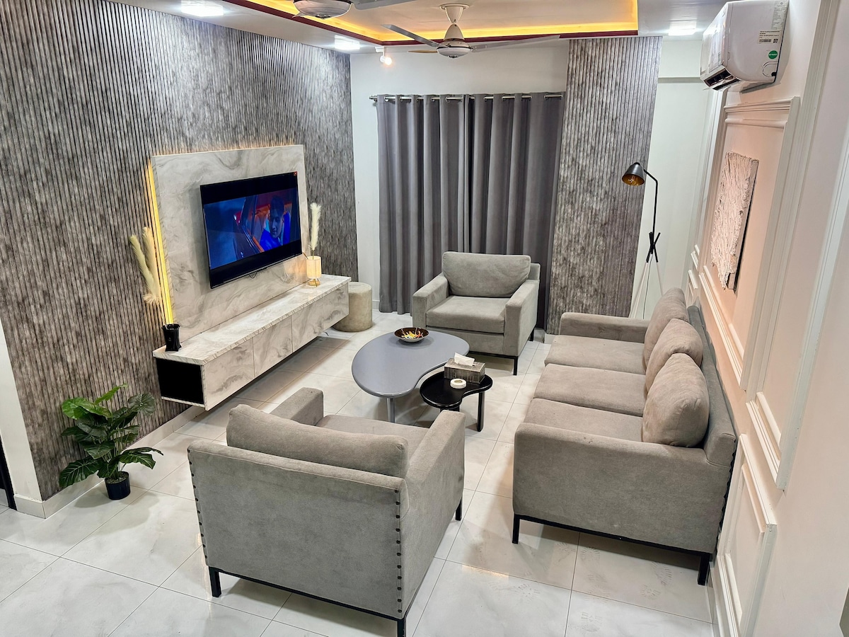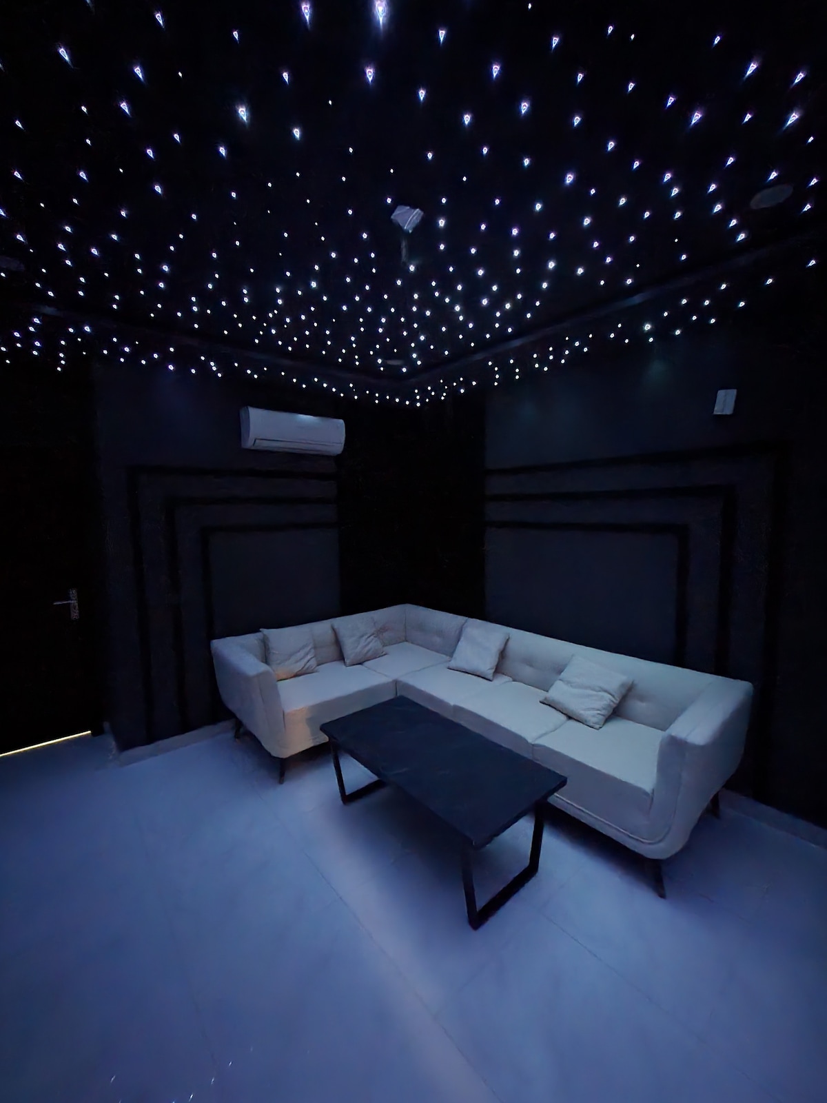 Luxury 1 BHK Ultra Premium Stary Lights Themed Apartment with 200 inch Projector screen for couples, friends, solo females and families as well located at Gulberg Lahore Peaceful and private area in the heart of Lahore Safe private & Secure Location - Self Check In with Pin Code - No need to meet anyone for keys - 24/7 Security - King Sized Bed With Soft Spring Mattress - 2 Ac - Kitchen with Electric Stove - Prime Location -Pool, Cinema, Gym -Basement Parking -Complimentary Snacks and Tea