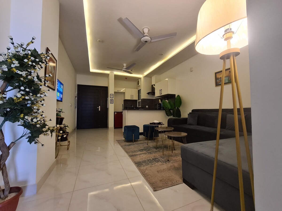 Welcome to Mirhaa Homes, A home away from your home even if you're only here for few days. Experience a luxurious, peaceful and spacious 1- bed room apartment situated at Aurum Gulberg ||| Lahore. A cozy bedroom with a balcony view, a well equipped kitchen, a perfect modern lounge and a sleek washroom. A perfect blend of comfort and convivence. We are determined to make your stay a memorable one every time. So what's with the wait book your apartment NOW