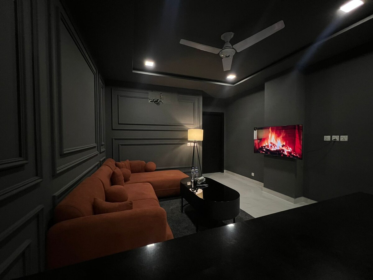 🖤 Arkyn A Private Dark Retreat in Zameen Opal, Lahore. Luxury 1BHK with moody dark décor, plush king bed, smart TV, and high-speed WiFi. Enjoy a fully equipped kitchen, cozy lounge, secure parking, and 24/7 security. 🔐 Self check-in for total privacy. Perfect for couples, solo travelers, or business trips close to cafes, shopping, and main roads. Your stylish, peaceful escape awaits.