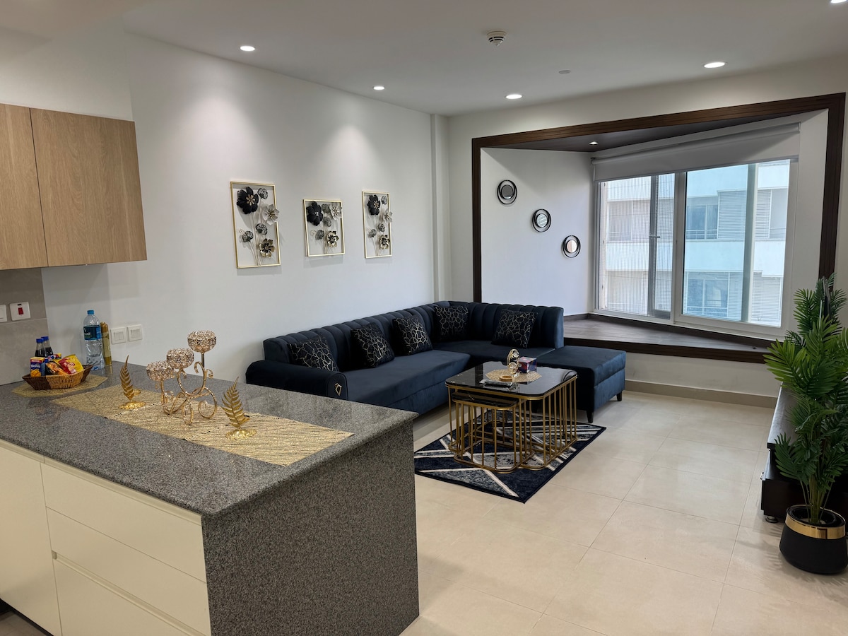 “Welcome to Oyster Courtyard, Gulberg – a luxurious designer one-bedroom apartment in the heart of Lahore! Perfect for travelers, couples, or solo explorers, this modern space offers comfort and style with premium furnishings and a cozy ambiance. Enjoy top-tier building amenities, including gym🏋️, swimming pool 🏊 , hot tub, and an on site bakery coffee ☕️shop. Located in the Gulberg, you’re just minutes walk away from the city’s best restaurants, shopping malls, and nightlife. Max guest :-3