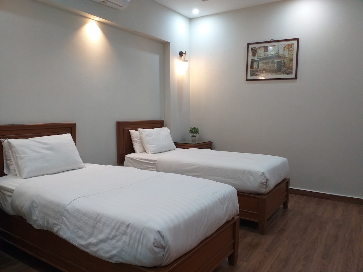 Please note that, as per Pakistan’s regulations, unmarried local couples are not permitted. The Twin Room at Oban Hotel offers a cozy 16 sqm space, perfect for two guests. It features two comfortable twin beds, high-speed Wi-Fi, air conditioning, a minibar, and a work desk. Guests can also enjoy 24/7 room service, laundry facilities, and a complimentary breakfast. Located in Gulberg, Lahore, it’s close to popular shopping and dining areas, ensuring a convenient stay.