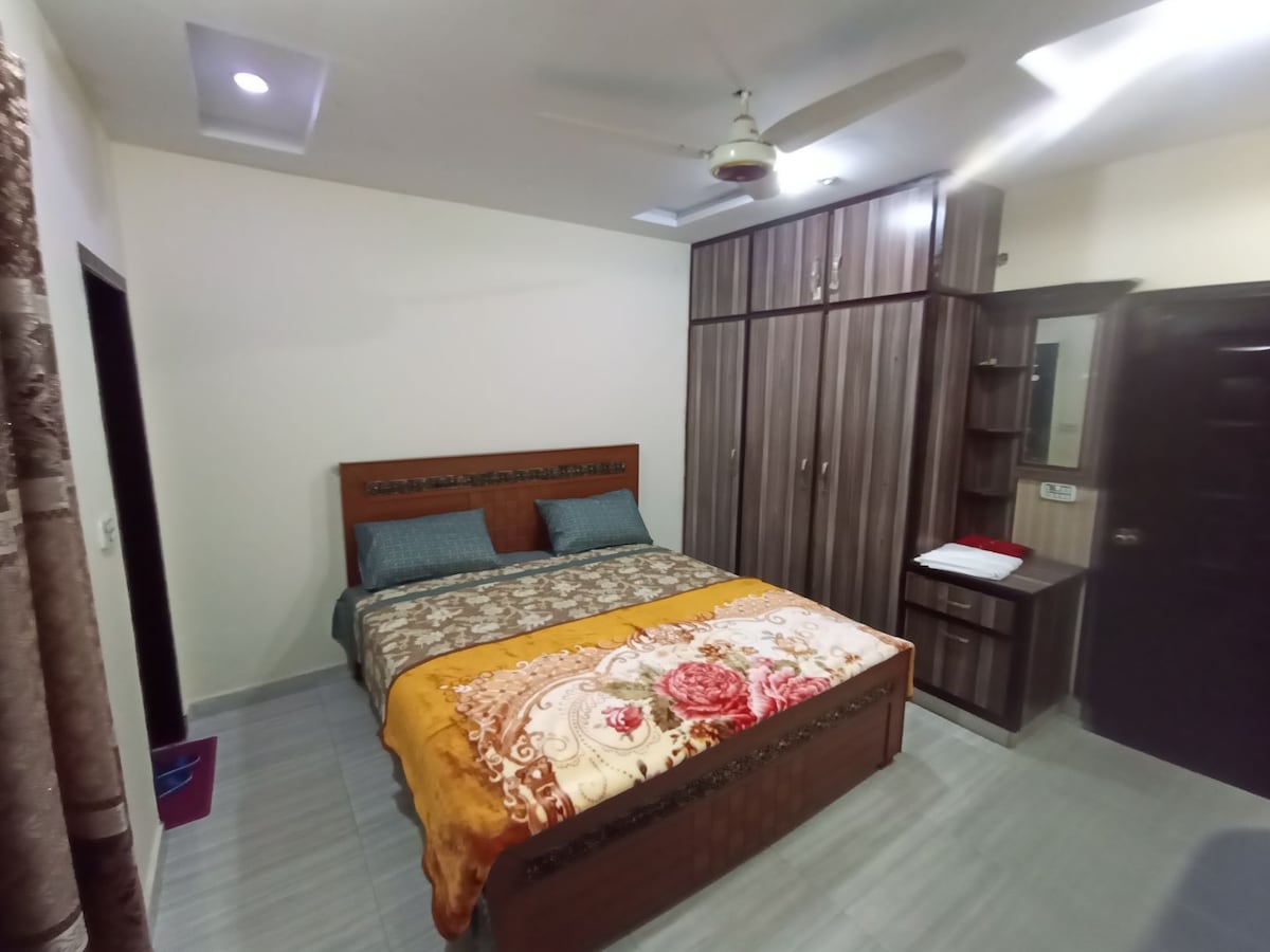 We offers a stylish one-bedroom apartment in DHA Phase 4, Lahore, with easy access to local attractions. The apartment features a cozy kingsize bed, a fully equipped kitchen, and a spacious living area. Enjoy a private terrace. Additional amenities include Wi-Fi, air conditioning, microwave oven and a washing machine. Guests are required to present valid ID upon arrival. Please note, loud parties, indoor smoking, and unregistered guests are not allowed. Unmarried couples will not accommodate.