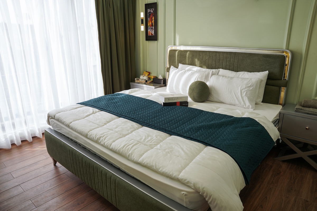 Our Grand Residence’s (950 square meters) are luxurious 2-bedroom apartments at The D'Azur Residency featuring state-of-the-art decor and private balconies for your exclusive enjoyment. Each bedroom is equipped with comfortable queen beds and their own private bathrooms. The spacious apartments also include a large living room, a fully equipped kitchen, and a dining area, offering the perfect blend of comfort and convenience for both relaxation and entertainment.