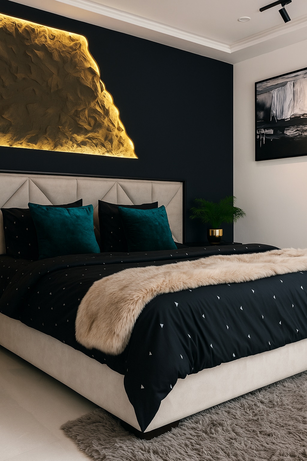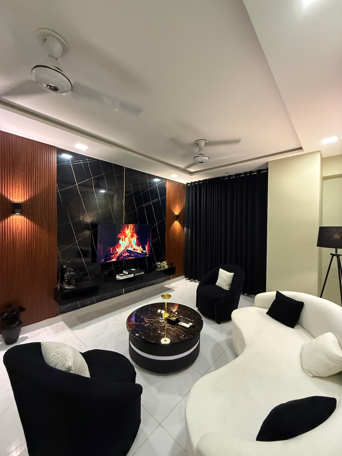Our 1 BR condo in DHA Phase 5 is where urban chic meets celestial cool. Think: a glowing moon wall for those late-night selfies and a bold dollar-stacked art piece that screams "main character energy" Wake up to park views from your private balcony swing, binge your faves on the 50" 4K Smart TV, or cook up something aesthetic in the fully loaded designer kitchen. The interiors? Abstract, stylish, and made for the feed. Plus, you're right next to Lahore's hottest dining spots.