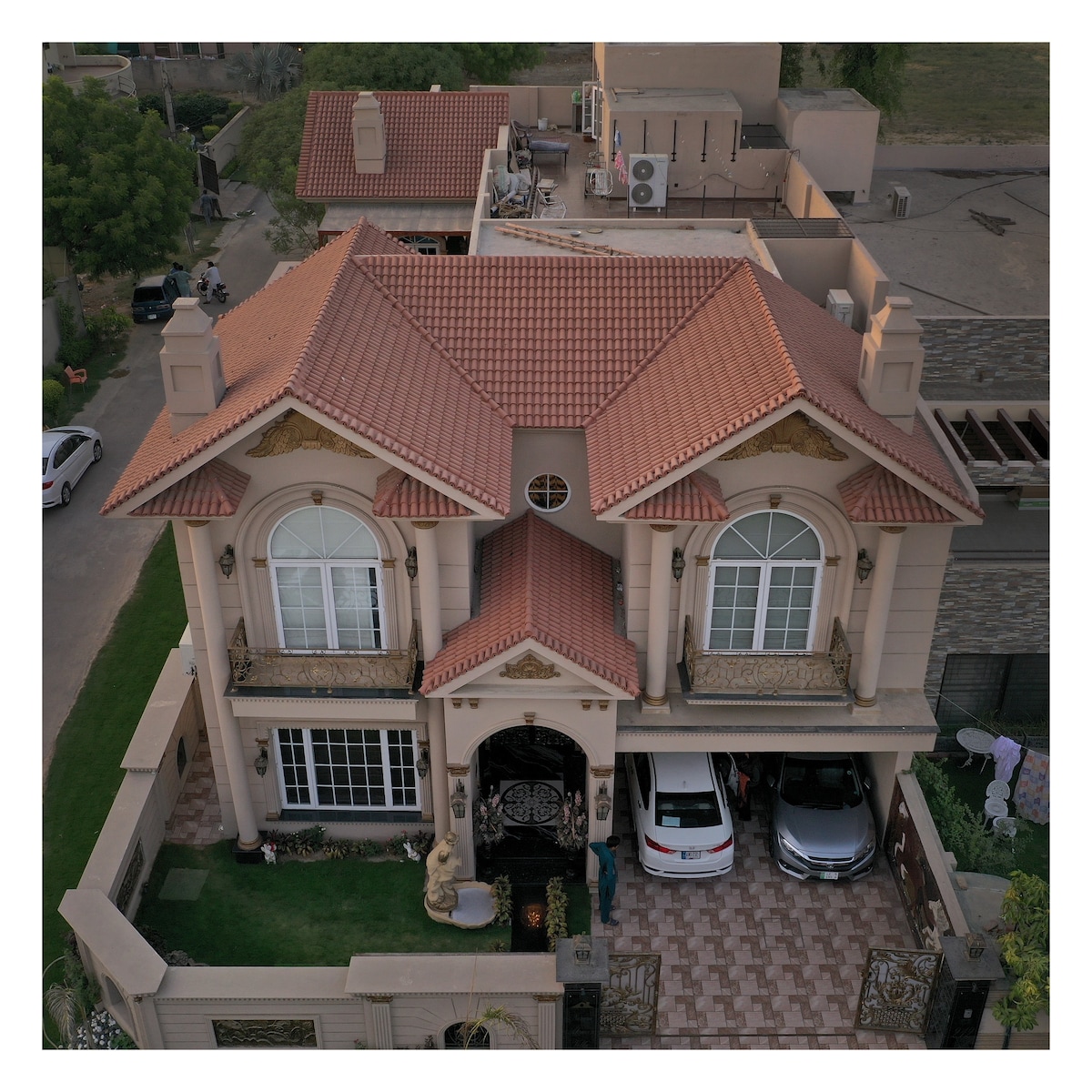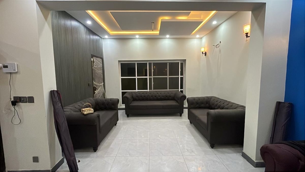 ★AWARDED SUPERHOST BY AIRBNB FOR OUR GUEST RATINGS! ★ 1 kitchen, 1 breakfast kitchen, 2 living rooms, 2 terrace, dining room, tv lounge (back and front facing). Amazing location, very close to restaurants, mosque, malls (packages mall), and international standard supermarket. 15 minutes from Lahore international airport. 5 minutes from motorway and ring road, and gold crest mall . Parking space for two cars and 24/7 houseboy service and security. ★ check us out on insta @thevillainndha