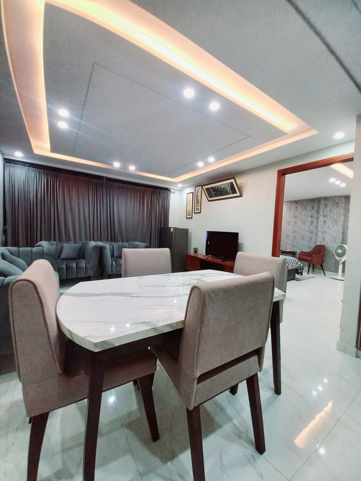 Enjoy memorable experience at a centrally-located place. • Ultra Fast Wifi with 55 inch LED for everlasting Netflix experience. • Central Cooling and heating system. • Fully Equipped Kitchen with complementary tea on arrival. • Gated and Guarded Car Parking with 24/7 CCTV . • Grassy Terrace with cozy chairs for peaceful sittings. •Just a 5 minute walk to DHA Phase 5 Market and Imtiaz Super Store. •Only 5 minutes drive to Lahore Ring Road. •Just 10 minutes drive from Lahore Airport.