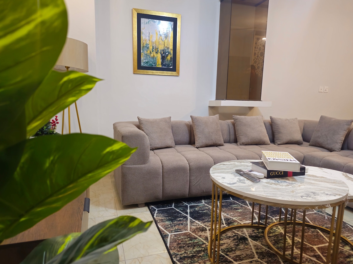 Our one-bedroom apartment combines modernity, comfort and luxury. Fully furnished, well-lit living space with contemporary furniture, a cosy bedroom, and a modern kitchen equipped with all essentials. Step out to cafés, restaurants, and shopping outlets, all within walking distance. ✅ Hosted by a 5-Star Superhost ✅ 24/7 Security & CCTV Surveillance ✅Free Parking ✅15 min Airport Perfect for business travellers, small families or solo guests looking for a premium experience in the heart of DHA.