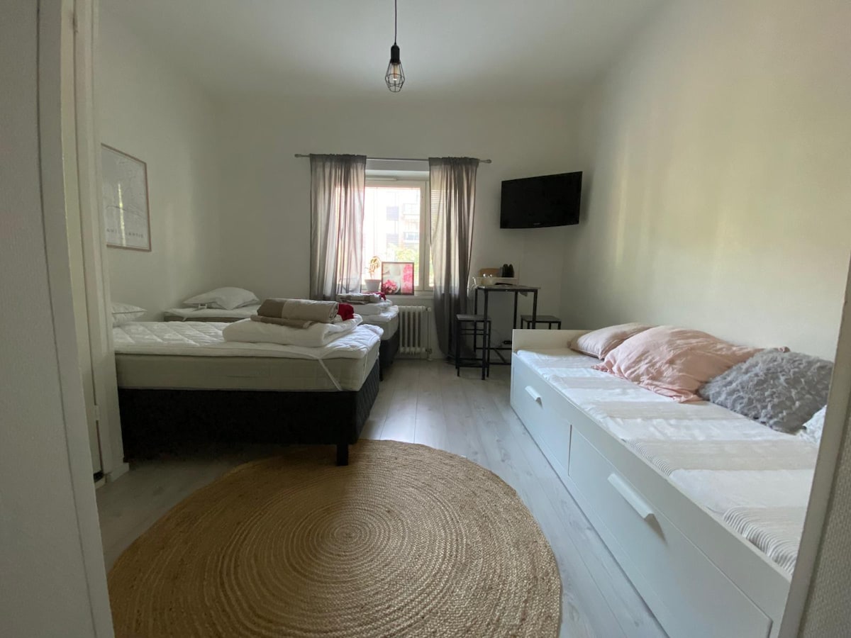 Täysin remontoitu moderni asunto Lahden keskustassa. Asunto sijaitsee rauhallisella paikalla, kaikkien keskustan palvelujen läheisyydessä. asunnossa on kaksi makuuhuonetta, täysin varustettu avokeittiö, kylpyhuone, kotoisa olohuone ja pieni parveke puistonäkymin. Olohuoneessa on mukava sohva, nojatuoli ja 65" TV. päämakuuhuoneessa on king size bed ja toisessa makuuhuoneessa kaksi yksittäistä laadukasta sänkyä. Asunto sijaitsee neljännessä kerroksessa. taloyhtiössä ei ole hissiä