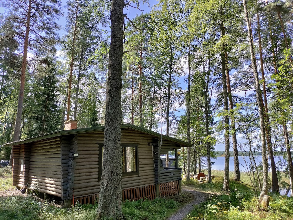 When you want peace and quiet with great views, this is your place! A few years old unique log cabin by the Vesijärvi lake. There is also a wood-heating lakeside sauna with great views. Location is only six kilometers from the Ironman WC cycle route and 20 km from Lahti center. Cabin includes two bedrooms with queen beds and sleeping loft upstairs with sofa bed and mattresses. You can also sleep at the lakeside sauna.