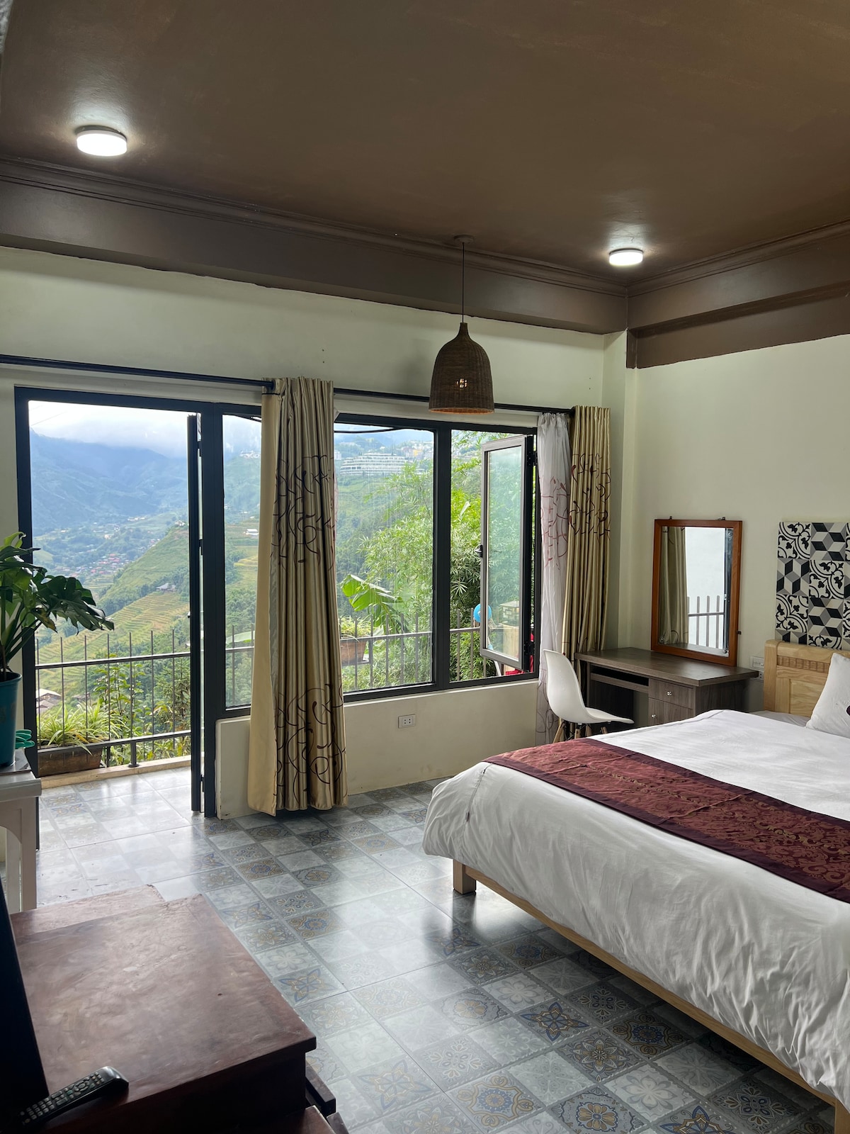Welcome to our charming bungalow, where you can wake up to one of the most stunning views of terraced rice fields in Sapa. With large glass windows, our cozy room offers an uninterrupted panorama, allowing you to immerse yourself in the beauty of nature. The serene sunrise from your bed will make your stay truly unforgettable. Come and experience the perfect blend of comfort and breathtaking scenery at our hillside retreat!
