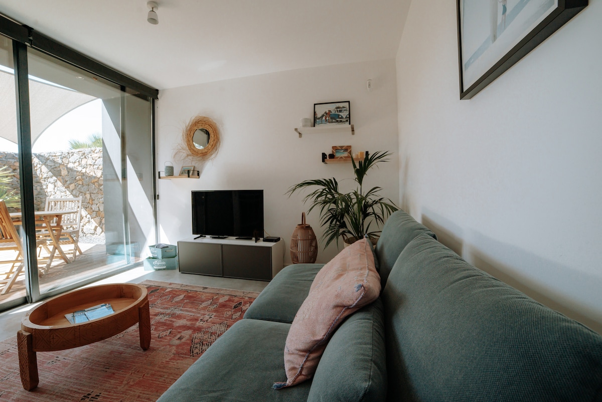 The perfect blend of style and comfort, our apartment boasts a homey open space with a modern kitchen and living room, designed to make you feel right home. The bedroom features a comfy king-size bed, the perfect retreat for a peaceful night's sleep . Step out onto your Private terrace and take in the breathtaking views of the island. Equipped with high speed WiFi (600Mbps optic fibre) it makes the perfect spot for the ones need to stay connected while on the go.