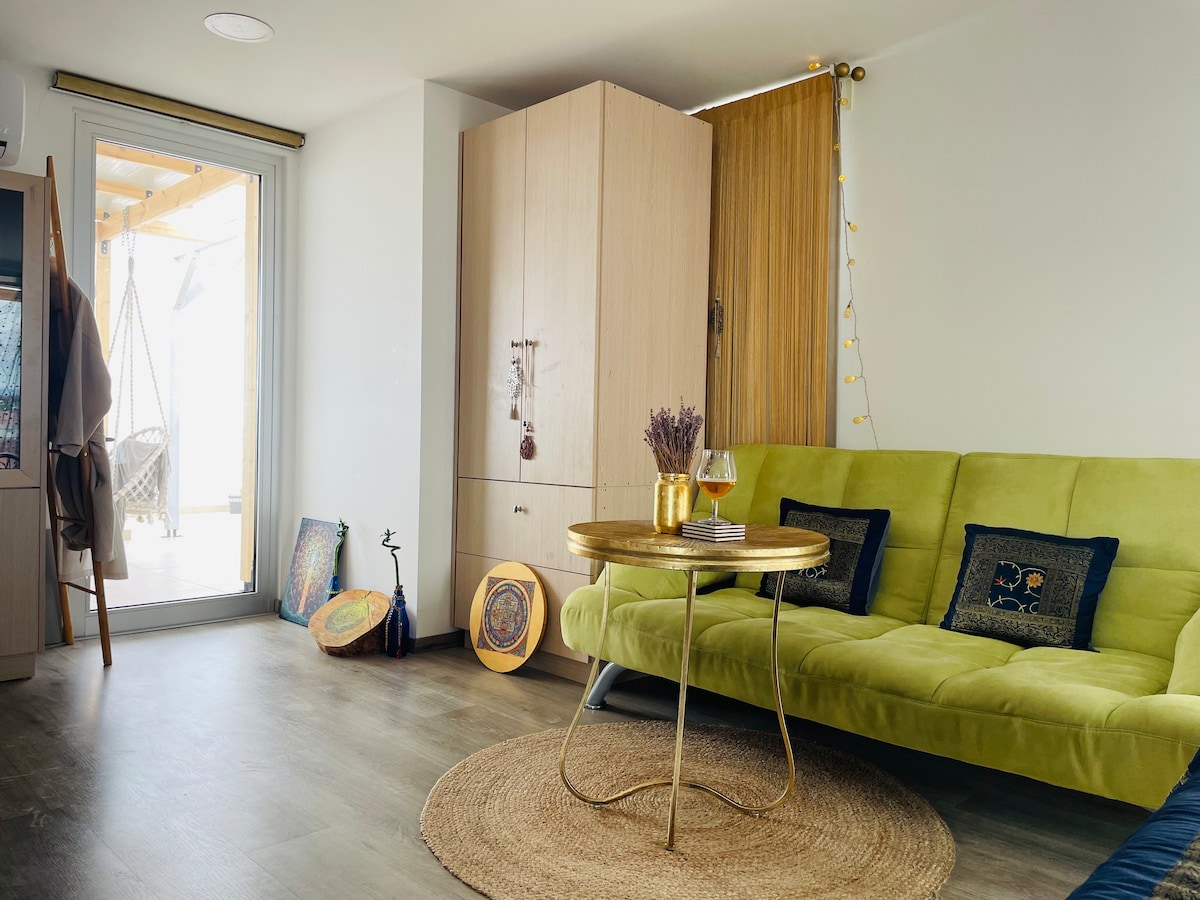 带大露台的私人小型单间公寓