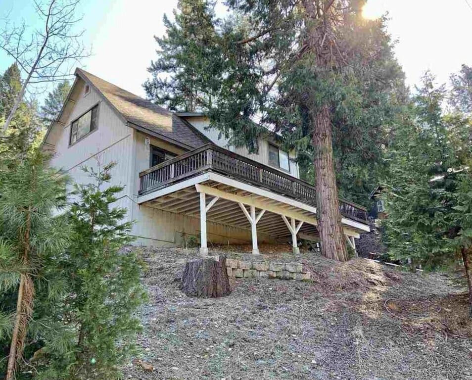 This impeccably clean and updated cabin in the woods is the perfect mountain retreat! It features a completely open living space on the main floor with modern appliances, and a cozy woodstove. The master bedroom has a gas stove and a new master bath with tiled shower, soaking tub, and wood vanity. The second bedroom has a queen and set of bunk beds. Enjoy the spacious back deck, complete with a hot tub.The upstairs bedroom has a queen bed and set of twin bunkbeds and a small half bathroom.