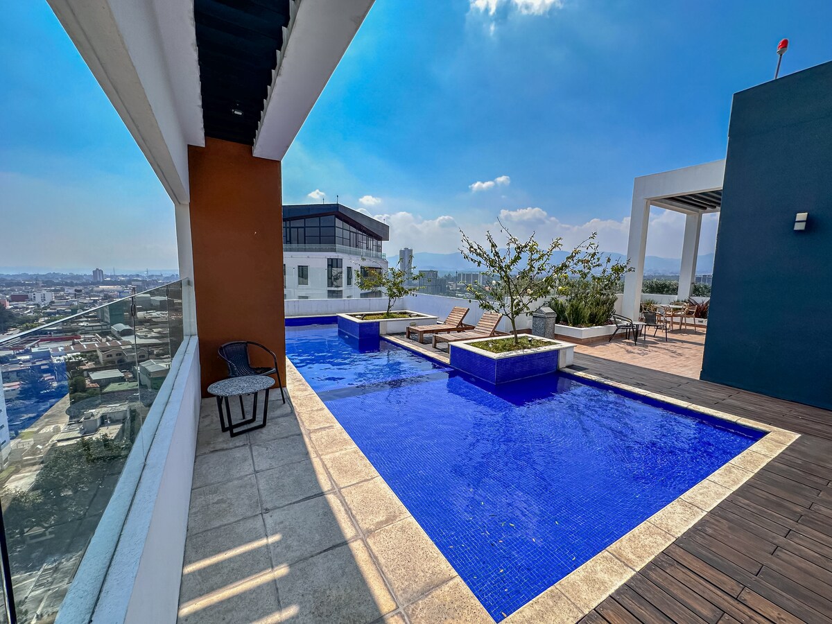 Vive la experiencia de lujo en las alturas de la ciudad. Este elegante apartamento con vistas panorámicas inigualables hacia los volcanes. Disfruta de una aventura exclusiva con una piscina climatizada y un ambiente cálido y acogedor. Ubicado estratégicamente cerca del aeropuerto y de las principales zonas turísticas de la Ciudad, es la opción ideal para quienes buscan comodidad, privacidad y una estancia inolvidable.