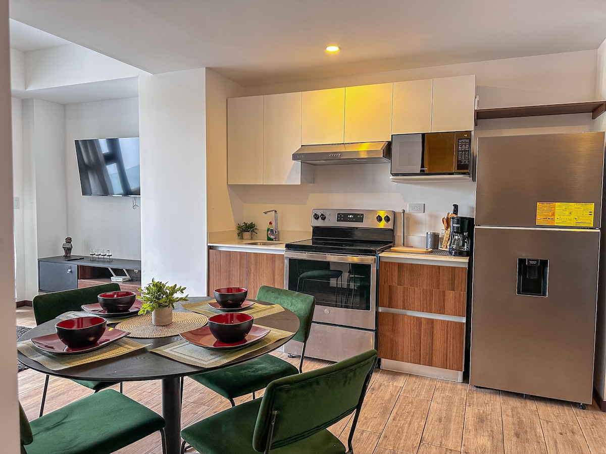 Relájate en este espacio tan tranquilo y elegante. Disfruta de una experiencia con estilo en este alojamiento en la mejor area de la ciudad, a pocos metros del aeropuerto. Con un balcon con jacuzzi y chimenea, nuestra suite de lujo tiene una vista impresionante a la ciudad. Es una muy buena opcion para ti para quedarte, tiene un estilo moderno, area para home office, nunca te aburriras mientras trabajas, conocelo!!