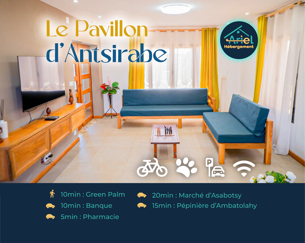 - À moins de 10 minutes des transports Cotisse et Soatrans - À moins de 6 minutes d’un supermarché - Environnement calme et apaisant - Sécurité assurée - WIFI performant et fiable Situé au coeur de la ville d'Antsirabé, on a le privilège d'être dans un quartier calme et tranquille. Notre logement est disposé d'un grand living room avec plusieurs chambre. Très pratique pour les voyages en groupe ou en famille pour bien profiter des activités ainsi que la beauté de la ville d'antsirabé.