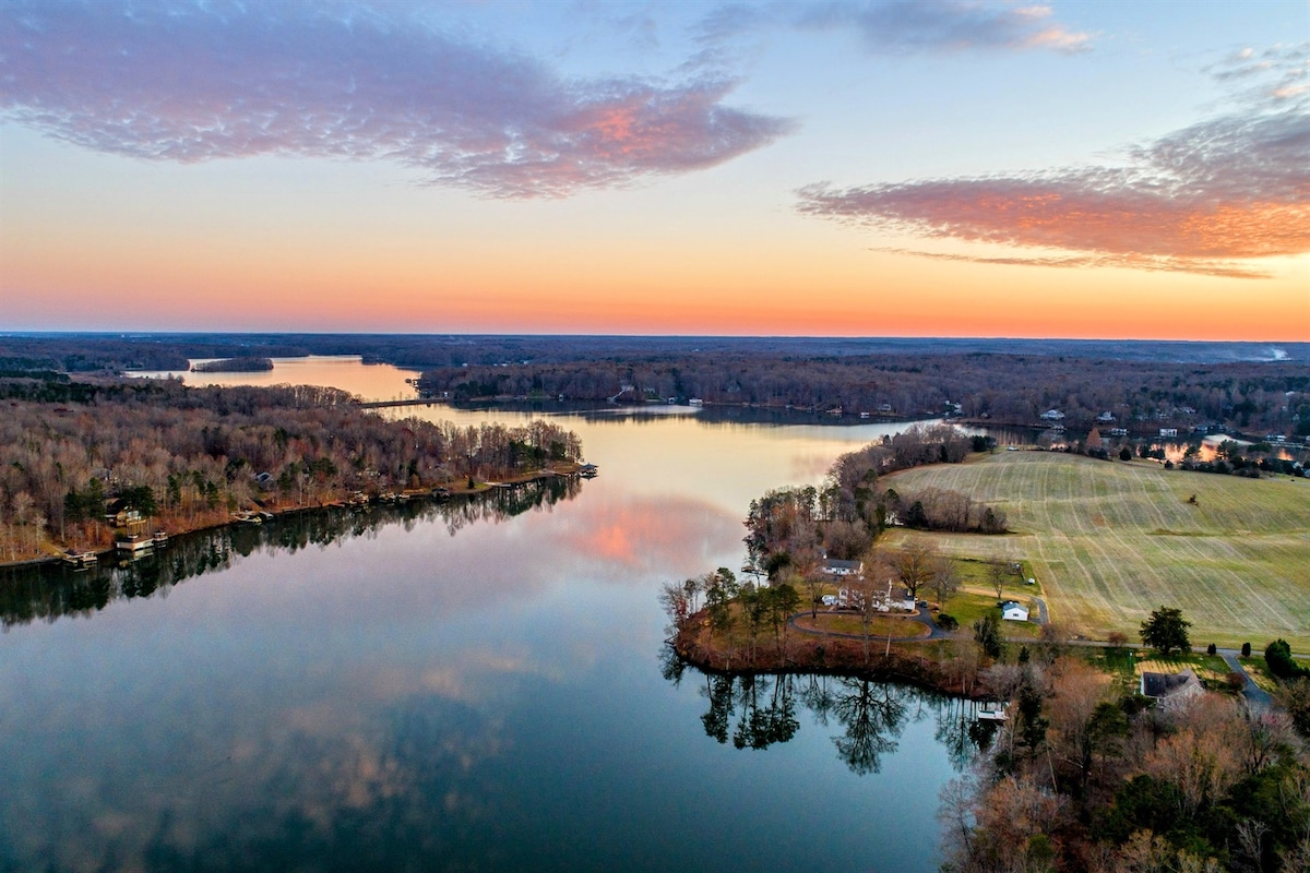 Hummingbird Lakehouse in Locus Grove, VA, offers waterfront access to the lake and various outdoor activities like golfing, kayaking, swimming, fishing, and horseback riding. Guests can gather around the fire pit and access community amenities like the pool and beaches. Nearby historic sites & hiking trails provide additional exploration opportunities. If you're looking for a peaceful getaway or an adventure-filled vacation, this lake house offers an idyllic setting for making lasting memories.