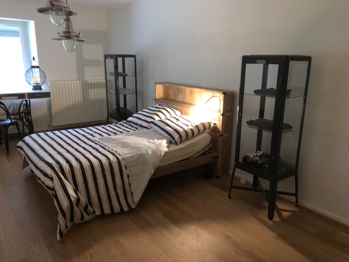 Une chambre refaite avec charme et élégance dans une ambiance cosy, à l'intérieur de ma maison. Elle se situe à l'étage avec une salle de bain privée, avec douche et toilettes. L'accès à celle ci se fait par l'intermédiaire de mon appartement. Environnement calme et paisible. A titre d'indication, le petit déjeuner n'est pas compris ( Mais peut être proposé en supplément).
