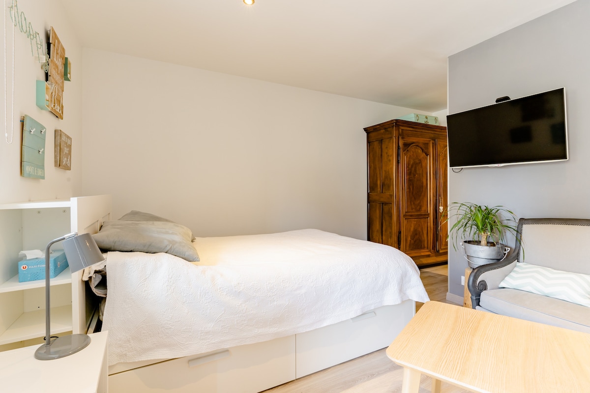 Envie d' une parenthèse en solo au coeur d'Annecy? Petit studio refait à neuf et judicieusement aménagé, bénéficie d'une terrasse ensoleillée permettant de déjeuner Il se compose d' une salle d'eau avec grande cabine de douche, d' une vasque , de toilettes (sanibroyeur) séparées par un rideau, kitchenette équipée, plaques induction, réfrigérateur, micro ondes, machine nespresso espace repas, coin penderie, lit UNE PLACE avec rangements. possibilité de louer 1 vélo. Pour UNE personne !