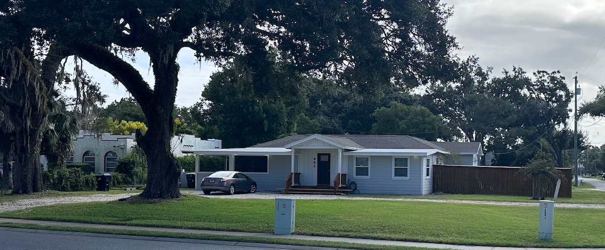 Beautiful newly remodeled home centrally located. 3 bedrooms (2 King 1 Queen) and 2 full baths (1 walk in shower w/ grab bars). Carport. Huge and private yard to enjoy! Comfortable living room with big screen TV, couches and lazyboy recliners. Kitchen is fully stocked for cooking. Office desk and chair. Washer and Dryer. 10 Minutes to Universal Studios and just minutes more to International Drive, Mall of Millenia, Florida Mall, or Disney. Grocery, liquor, pizza, chinese within a 5 minute walk.