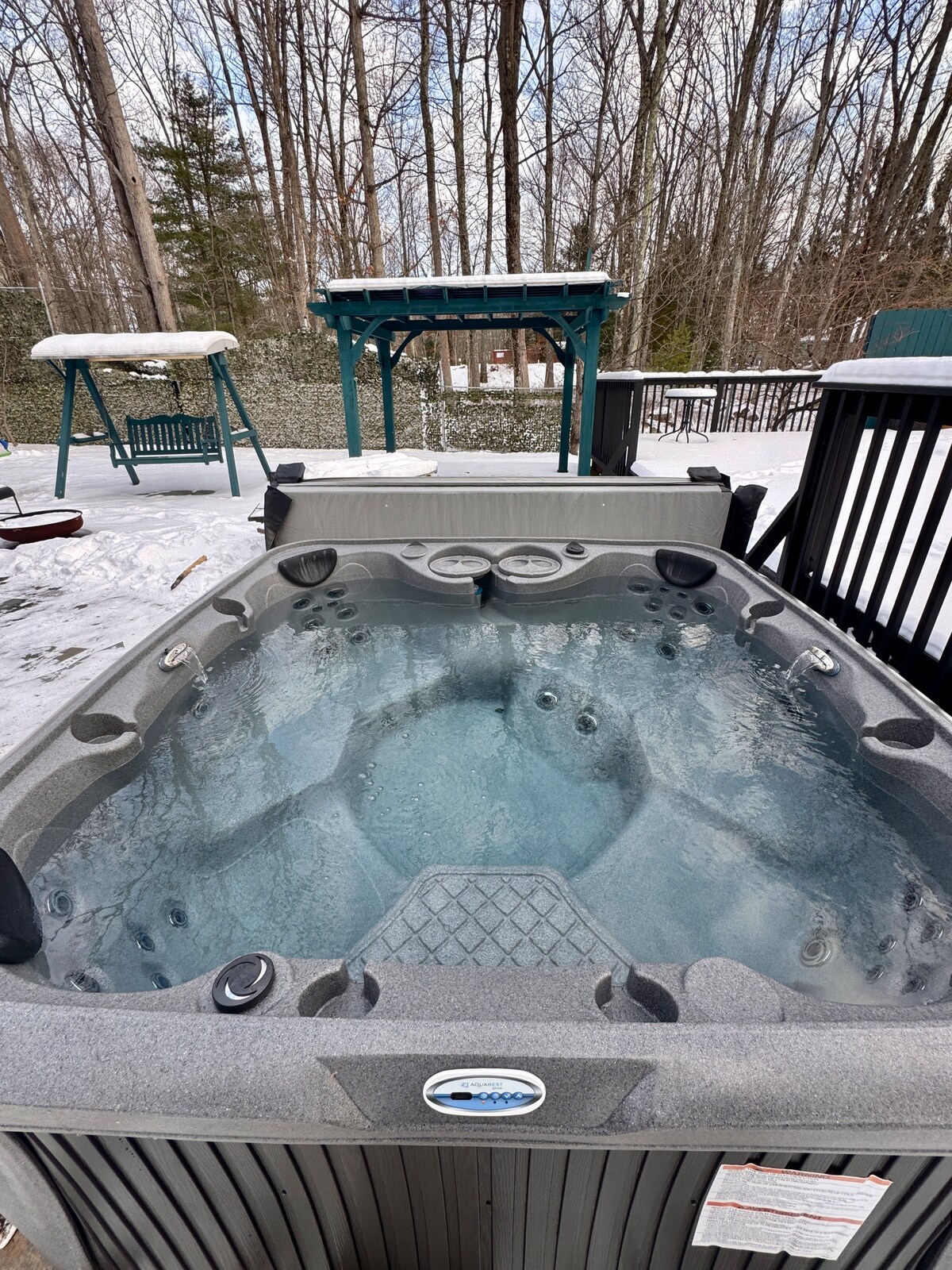 Latitude Adjustment is a unique retreat in Pocono Lake, designed for those who seek the perfect blend of relaxation and local exploration. Equipped with an amazing 4person outdoor steam sauna, a private 7person hot tub featuring waterfall, Bluetooth speakers, and LED lights, huge game room with 65” TV, wood burning stove, large outdoor entertaining area with a grill, fire pit, guest shed and dining area. Located in a beautiful, amenity-rich Arrowhead Lake community, 1 minute walk to the lake!