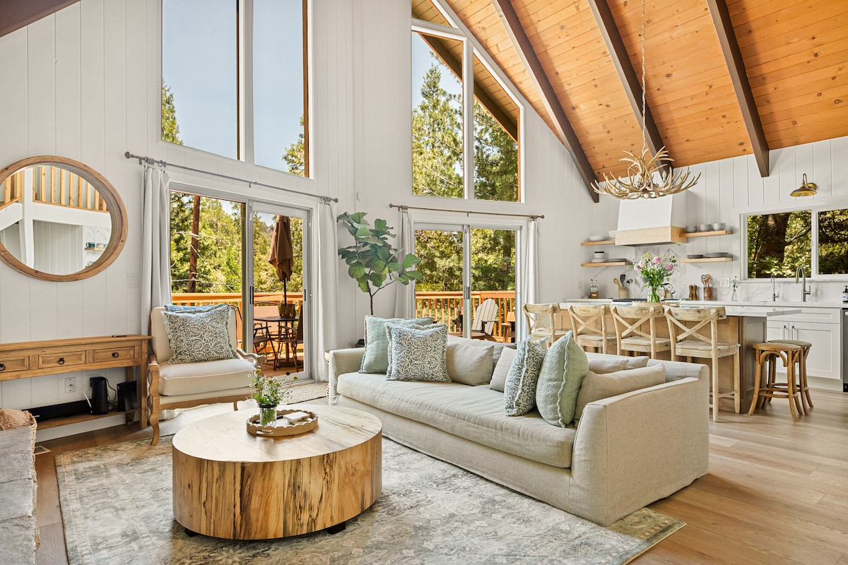 ✨ Location, Location, Location! A special cabin with breathtaking view of The Pinacles⛰️ Tucked away on a peaceful street in Lake Arrowhead. This serene retreat features floor-to-ceiling windows, cozy interiors, and forest scenery that invites you to slow down and recharge. Just minutes from hiking trails, shops, and top-rated restaurants, you’ll enjoy the perfect balance of nature and convenience. Perfect for couples, families, groups, or solo travelers looking for a stylish mountain escape.