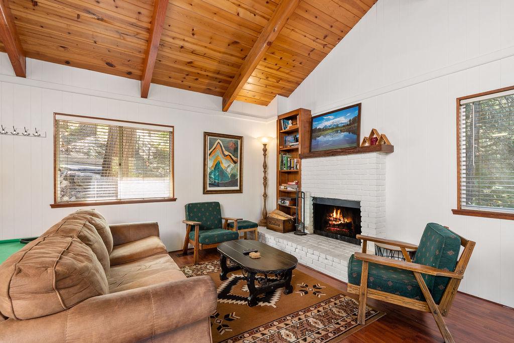 Large 1100 sqft house has been beautifully decorated with 16 foot high vaulted pine wood ceilings, natural light, a center piece fireplace plus a large, open plan entertainment area. This spacious “home away from home” sleeps 4 comfortably, with two separate bedrooms two bathrooms. Big Bear Phoenix Chalet is quiet, yet is centrally located and close to the lake, hiking, and skiing. It's part of the upscale residential neighborhood of Whispering Forest which is extremely clean and safe.